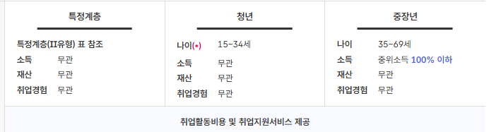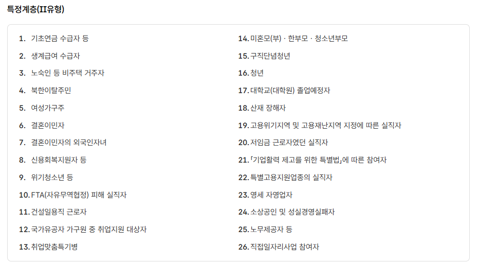 - 특정 취약계층: 장애인, 한부모 가정 등 취업 취약계층