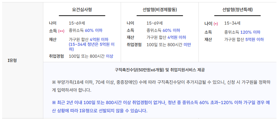- 지급 요건: 소득 수준, 재산 요건, 취업 의지 등