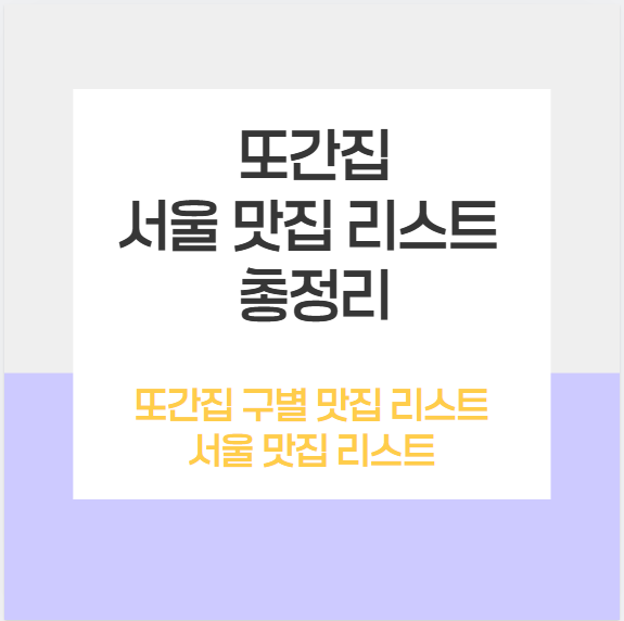 또간집 서울 맛집에 대해 정리하여 소개드리겠습니다.