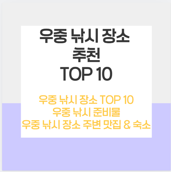 우중 낚시 장소 추천 TOP 10 소개하도록 하겠습니다.